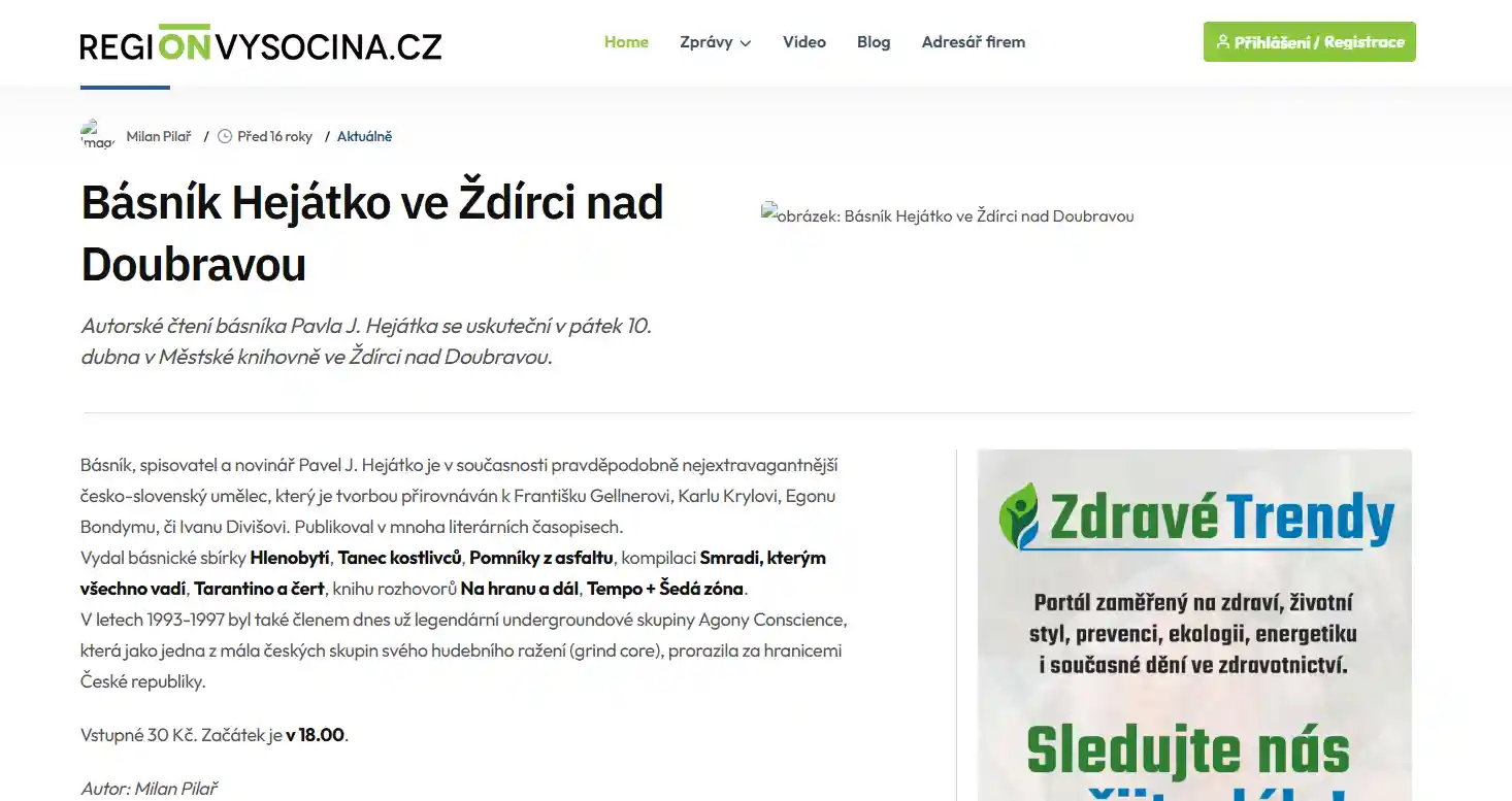 Básník Hejátko ve Ždírci nad Doubravou