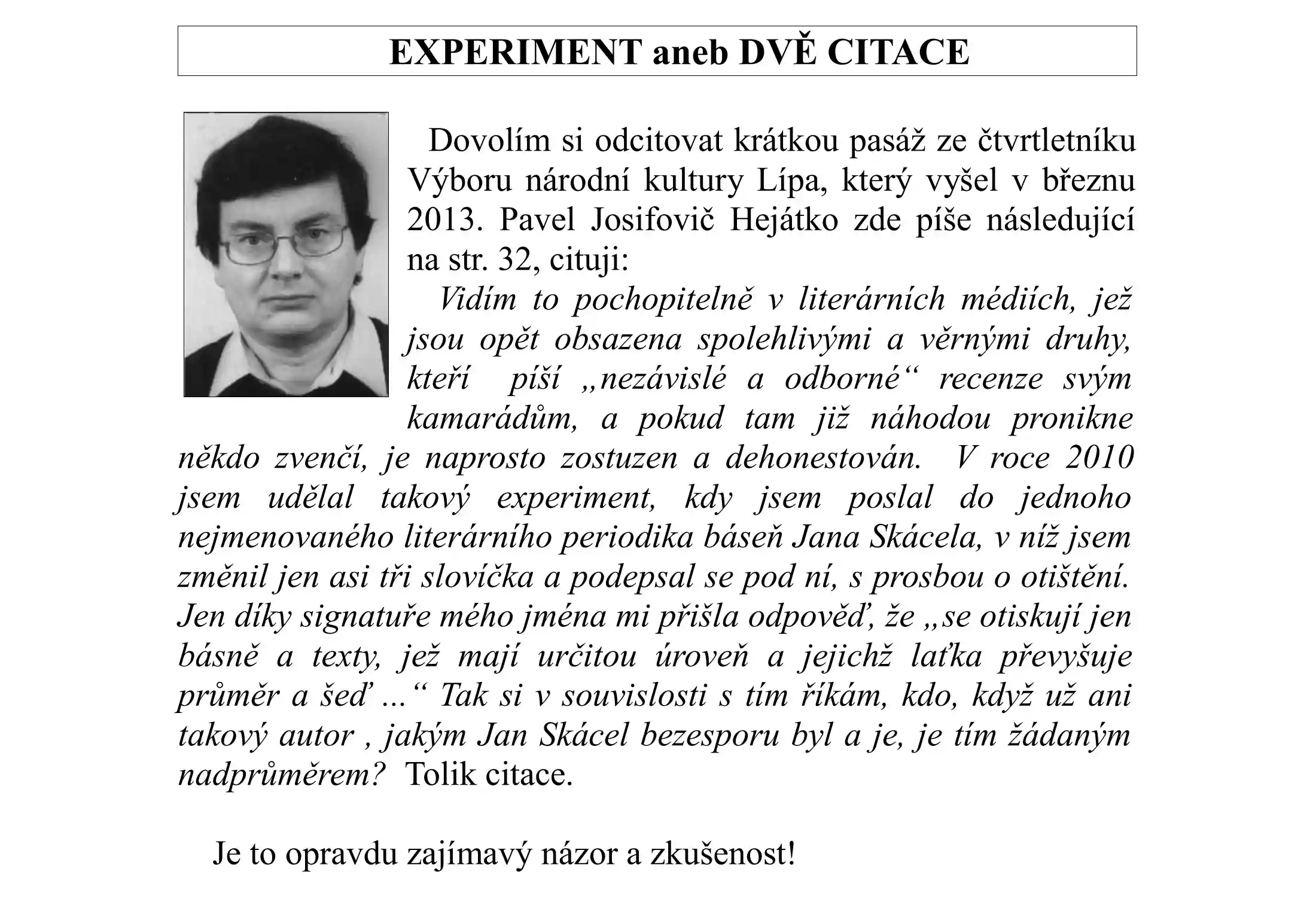 Experiment aneb Dvě citace