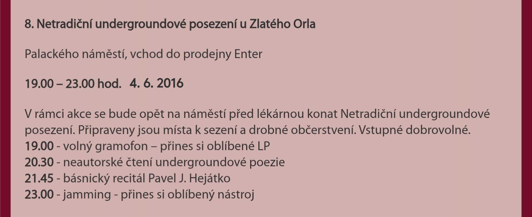 8. netradiční undergroundové posezení u Zlatého Orla