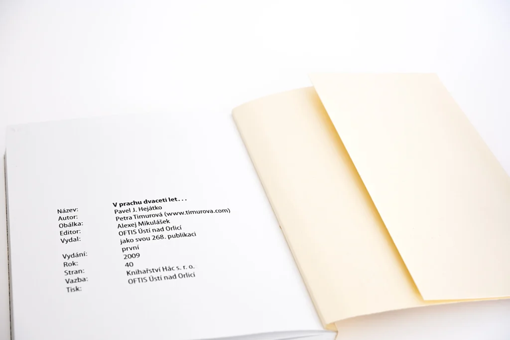 Sbírka V prachu dvaceti let… vyšla u nakladatelství OFTIS Ústí nad Orlicí v omezeném nákladu 150 výtisků, což z ní činí poměrně vzácný titul v kontextu soudobé undergroundové či nezávislé poezie. Autorkou obálky je Petra Timurová.