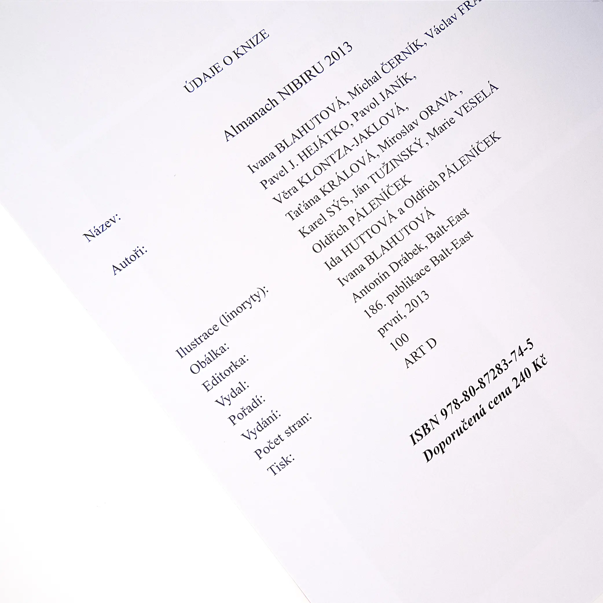 Vydalo nakladatelství Balt-East v Praze roku 2013.