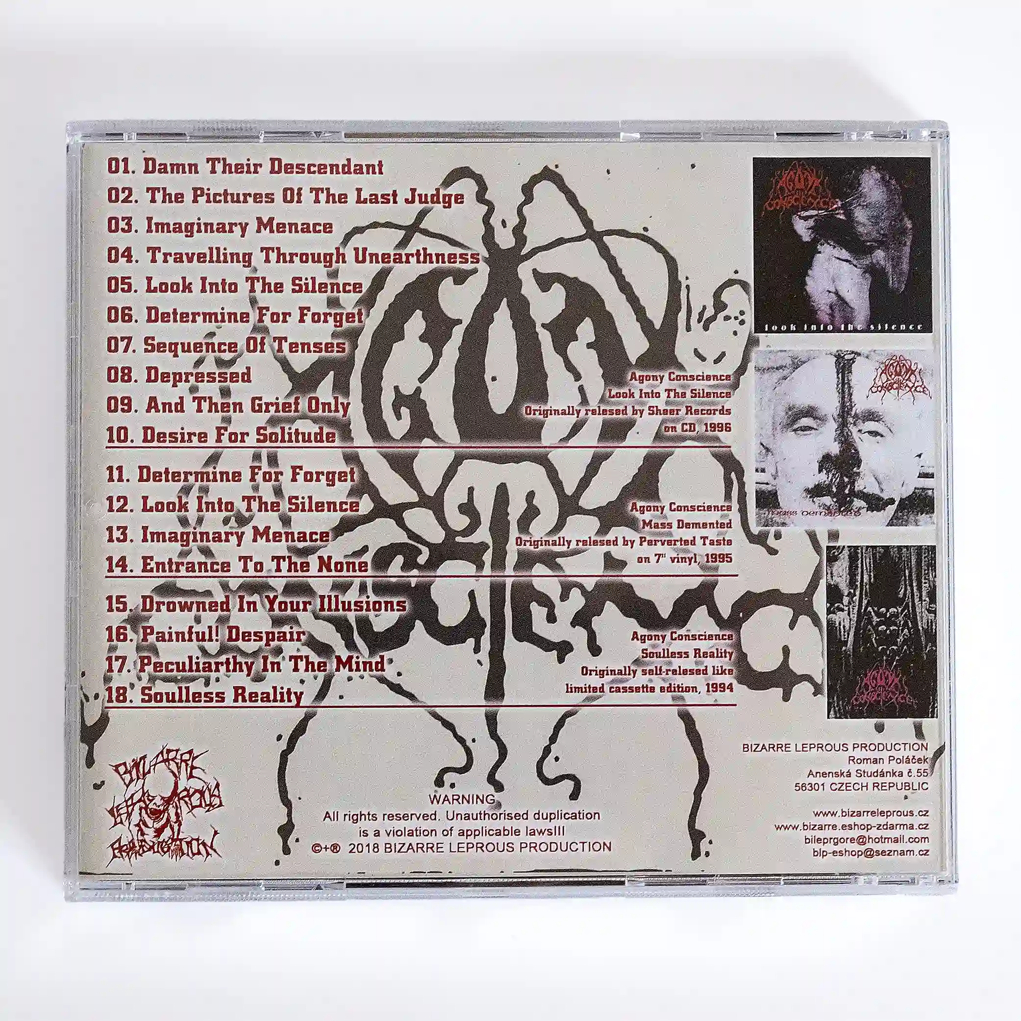 Tento přehled pokrývá kompletní hudební tvorbu skupiny Agony Conscience – od jejich vlastních sólových nosičů až po nejrůznější kompilace, na nichž se kdy objevila její stopa. Když diskografií procházíme, vidíme vývoj skupiny tak, jak byl během let zachycen na dostupných fyzických i digitálních nahrávkách. Jde o živý a stále se rozšiřující zdroj, protože s postupem času dochází k objevování dalších materiálů, raritních záznamů i méně známých vydání.